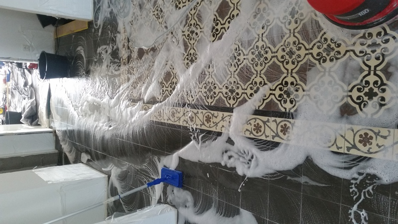 Zementfliesen von Casa:1 wurden gereinigt, imprägniert und gewachst nachdem der Fliesenleger Zementschleier einer Nano-Fuge nicht ausreichend entfernt hat.